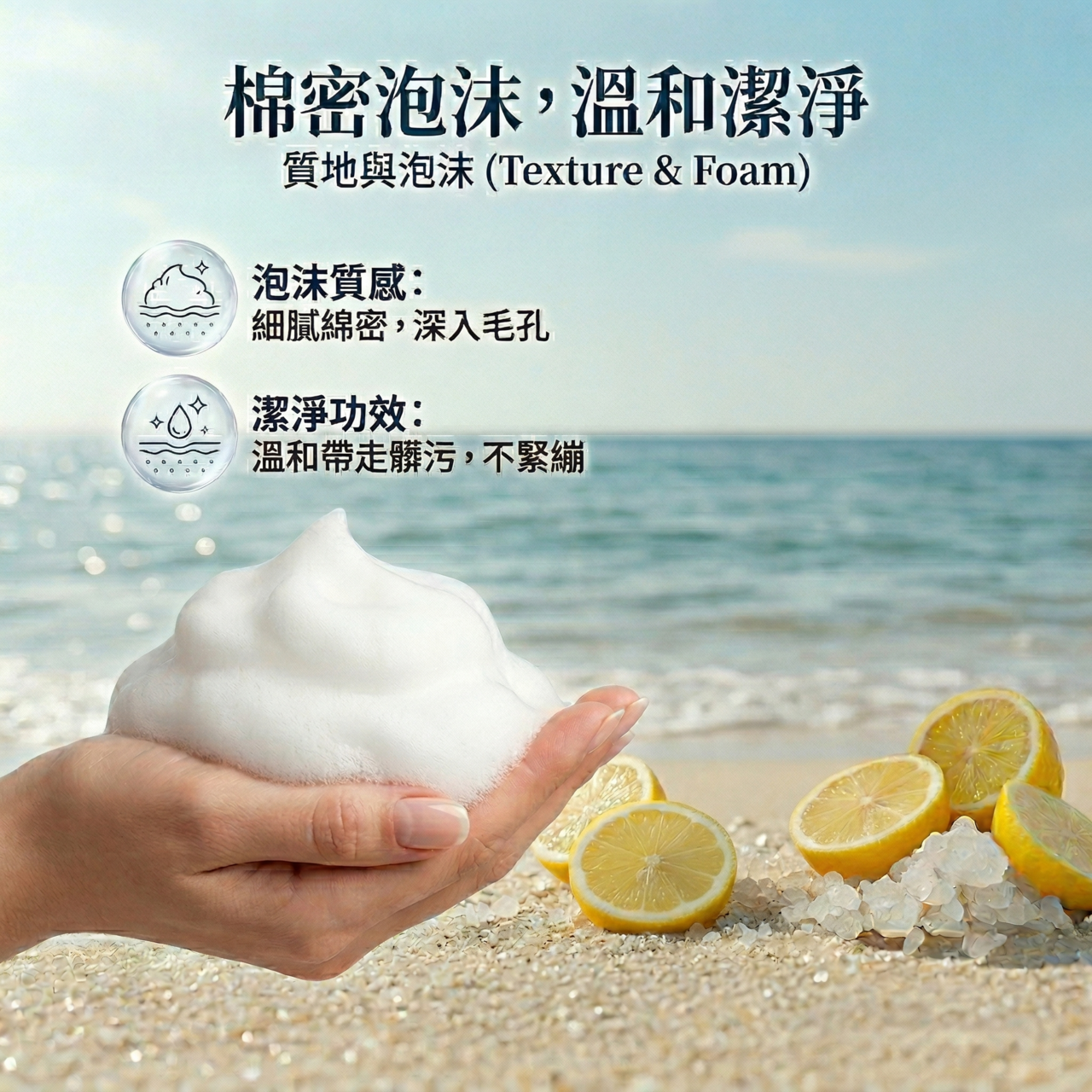 非皂化配方,洗得乾淨、好沖洗(沖洗不油滑感)、不緊繃、洗後不易乾癢。